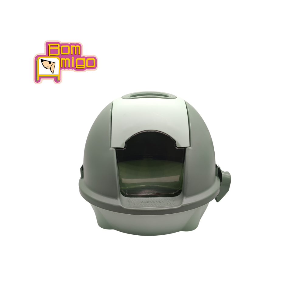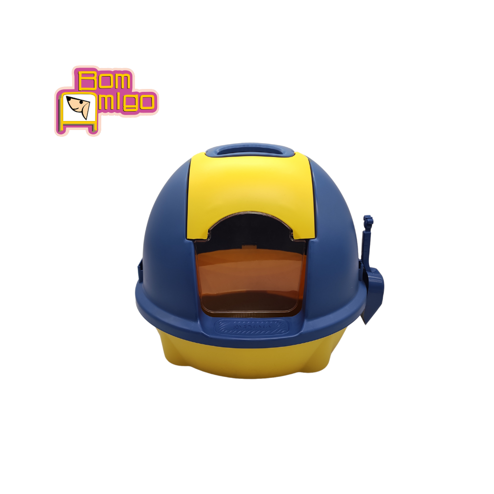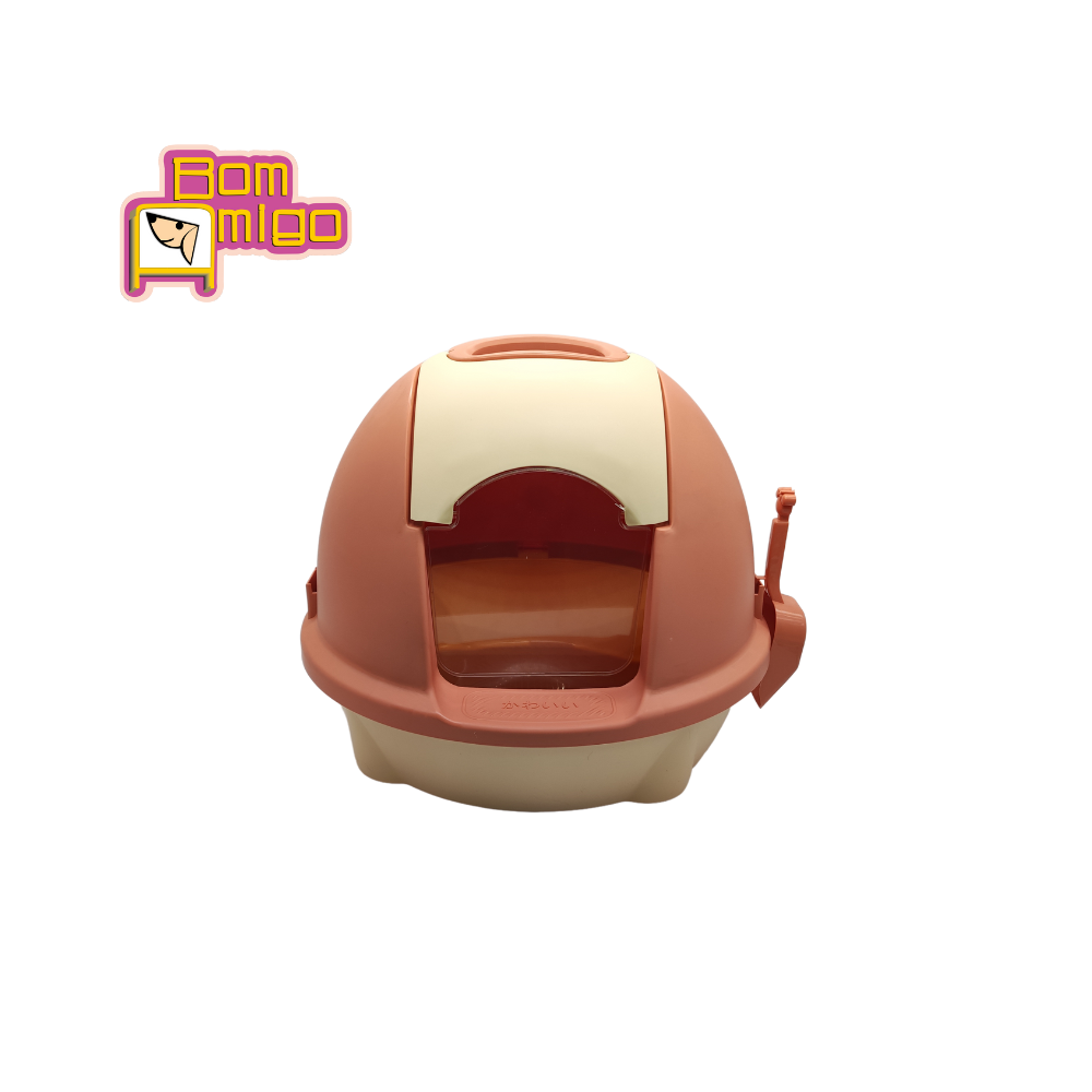 Uma linda caixa higiênica arrendondada e fechada possui porta pivotante.