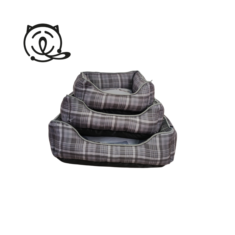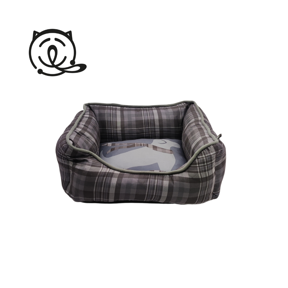 CAMA PET WINTER possui linda estampa cinza xadrez.