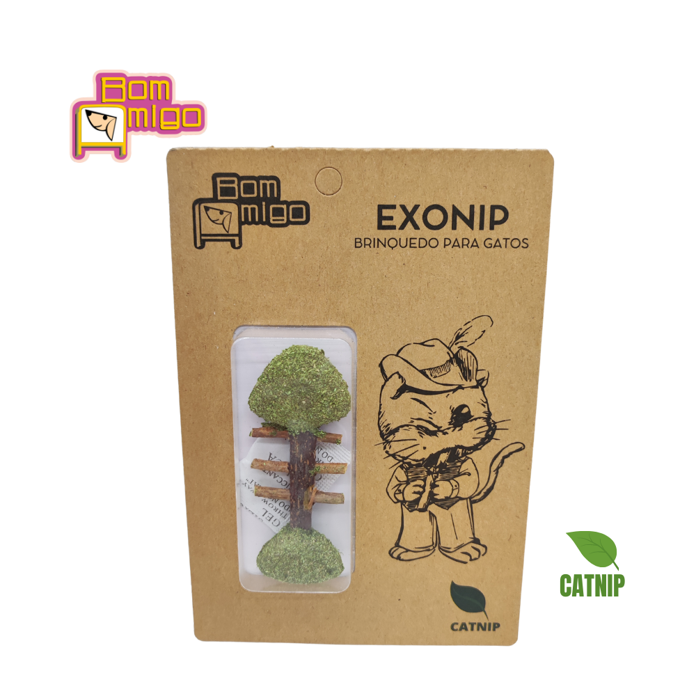 CAT EXONIP é um catnip em formato de exoesqueleto que mede 8x3x1 cm e pesa 38g