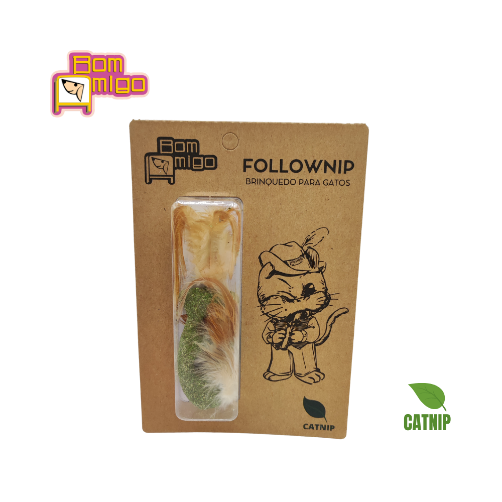 CAT FOLLOWNIP é um peixe vazado de catnip com penas que mede 11x3x1,5 cm e pesa 33g