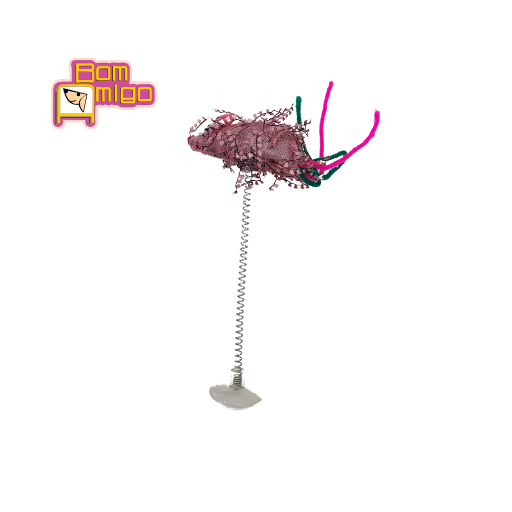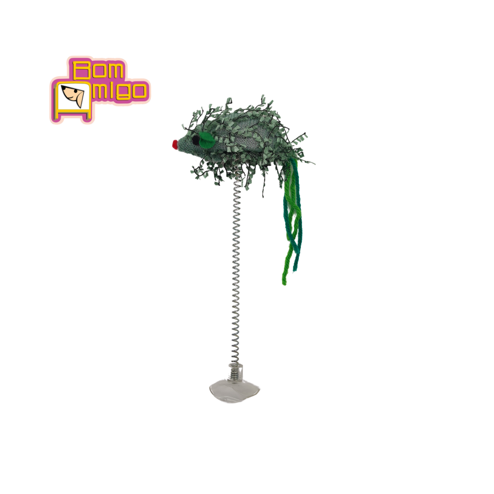 CAT MOLA HIIR é um ratinho preso em uma mola com ventosa para prender em superfícies como chão ou mesa..