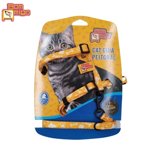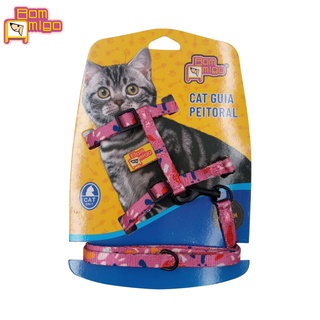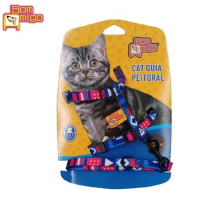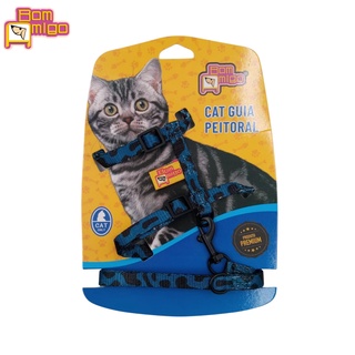 Disponível nas cores AZUL, ROSA, VERMELHA, AZUL CLARO, AMARELO E VERMELHO/AZUL. A guia mede 1,20 m por 1 cm de espessura e o peitoral tem as dimensões ideais pro seu Bom Amigo felino: 22-33cm pescoço, 27-42cm corpo, e espessura de 1cm pesando 53g